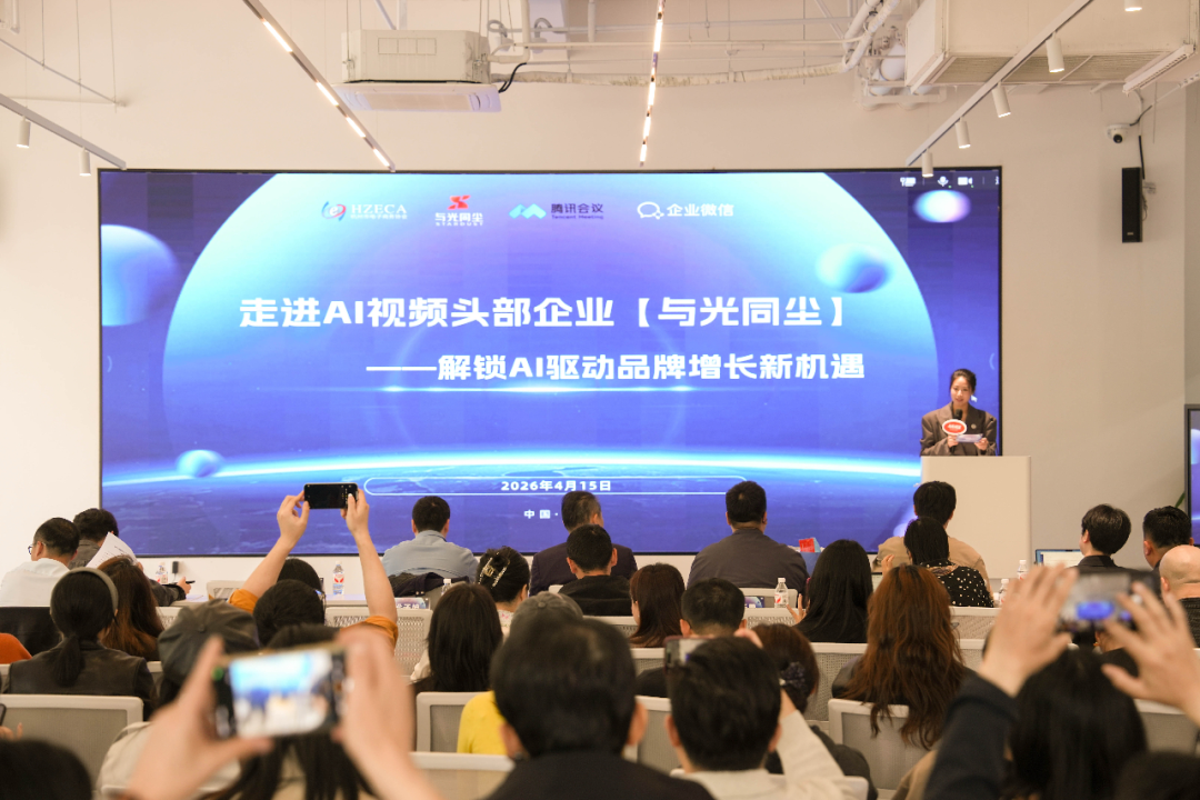 4月15日,由杭州市电子商务协会主办,与光同尘、腾讯会议、企业微信联合协办的“走进AI视频头部企业,解锁AI驱动品牌增长新机遇”主题沙龙活动圆满举办。通过实地参访、主题分享与互动交流,与会嘉宾深入了解AIGC在电商内容创作中的创新实践,共同探索AI技术驱动品牌增长与全链路智能升级的无限可能。